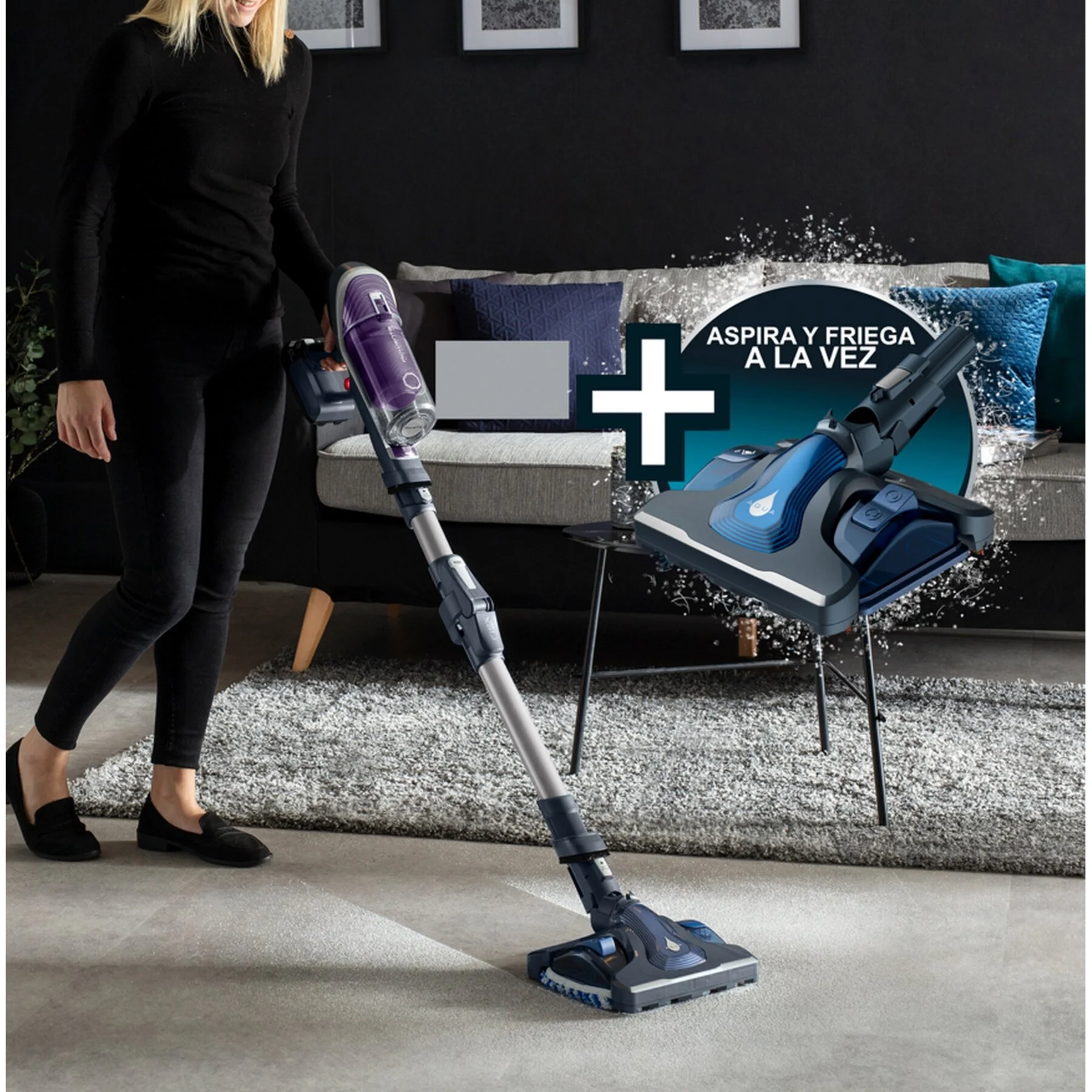 Limpia en la profundidad con el aspirador escoba Rowenta RH9681WO X-Force Flex 8.60 de color púrpura y aluminio que dispone de la función Boost.
