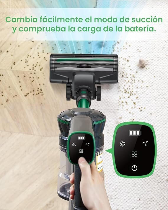 - 【Pantalla Táctil LED】 La aspiradora sin cable está equipada con una pantalla táctil LED, que le permite controlar el modo de succión de la aspiradora y supervisar la potencia restante de la aspiradora en cualquier momento
