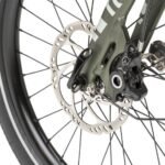 La bicicleta eléctrica plegable Tern Vektron S10 está equipada con el cambio Shimano Deore de 10 velocidades. El resto de componentes son de buena calidad, como los neumáticos tipo globo Schwalbe Big Apple y los frenos de disco hidráulicos Magura MT4.