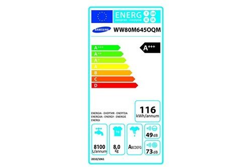 Consumo de energía del programa de referencia Algodón 60°C a plena carga (kWh): 0,51.