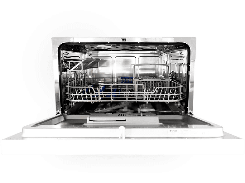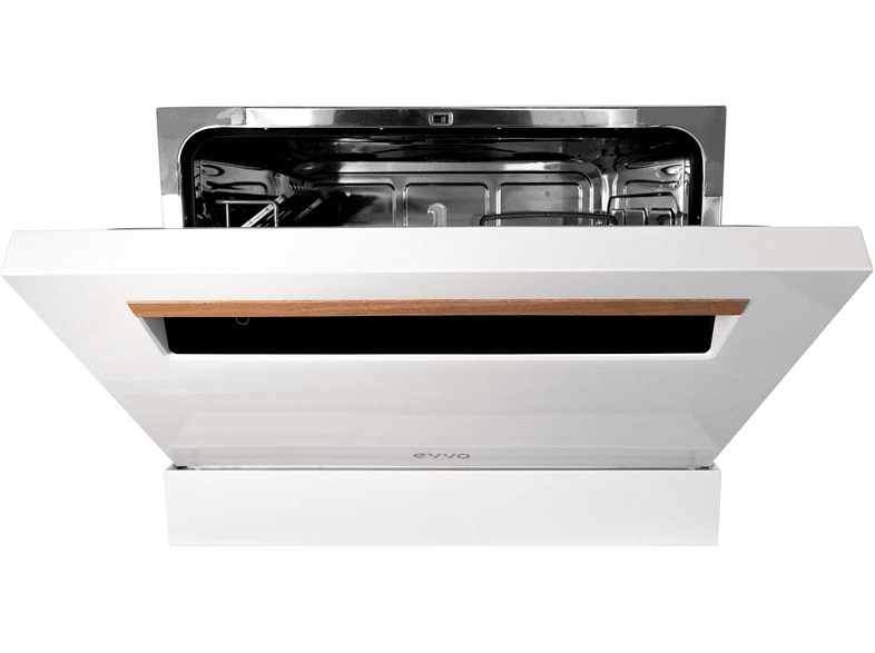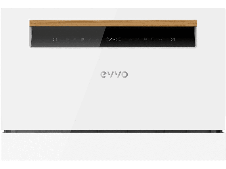 EL ESPACIO YA NO ES UN PROBLEMA Un lavavajillas compacto y silencioso que cabe en cualquier hogar. Con un panel de control táctil, el EVVO Mini D te da la opción de elegir entre 8 programas según sea tu necesidad. PEQUEÑO PERO ESPACIOSO Este lavavajillas de EVVO, con una capacidad de hasta 6 cubiertos, puede encajar tanto en familias pequeñas como en oficinas. PANEL DE CONTROL TÁCTIL Panel de control negro, táctil, sencillo e intuitivo para usarlo con facilidad por cualquier miembro de la familia. OCHO MÁS UNO Elige el programa que necesites, tienes entre los que escoger: AUTO, INTENSIVO, NORMAL, ECO, CRISTAL, 90 MINUTOS, RÁPIDO, AUTOLAVADO. A estos puedes aplicarle la función de secado extra para que la vajilla salga lista para guardar. PARA CUANDO NO TIENES TIEMPO Cuenta con un programa rápido para ahorrar no solo tiempo sino también energía. Además, puedes programarlo con hasta 24 horas de antelación, gracias a su función de inicio diferido. MUY SILENCIOSO El lavavajillas EVVO Mini D emite un sonido de 49 decibelios, lo que equivale a una conversación normal entre dos personas. AHORRO EFICIENTE Este modelo tiene una eficiencia energética de Clase A+ y en cada lavado consume tan sólo 6,5L. Además, utilizando el programa ECO se puede reducir mucho más el consumo de agua. ¿Y SI HE OLVIDADO METER ALGO? Es tan fácil como apagarlo y meter las piezas que hayas olvidado, aunque el programa ya está en marcha. Debemos comprobar que el dispensador de detergente no se ha abierto todavía, si no tendremos que introducir de nuevo una pastilla de detergente. CAMBIO DE LAVADO Con el EVVO Mini D puedes modificar tu programa durante los primeros minutos de funcionamiento, antes de que el dispensador haya liberado el detergente. CHILD LOCK El bloqueo especial para niños hace que la cocina sea un lugar más seguro para ellos. Marca española | Tamaño compacto | 6 servicios | Inicio diferido | 8 programas | Secado extra | Programa ECO | Programa autolavado | Panel de control LED | Control táctil | Child Lock