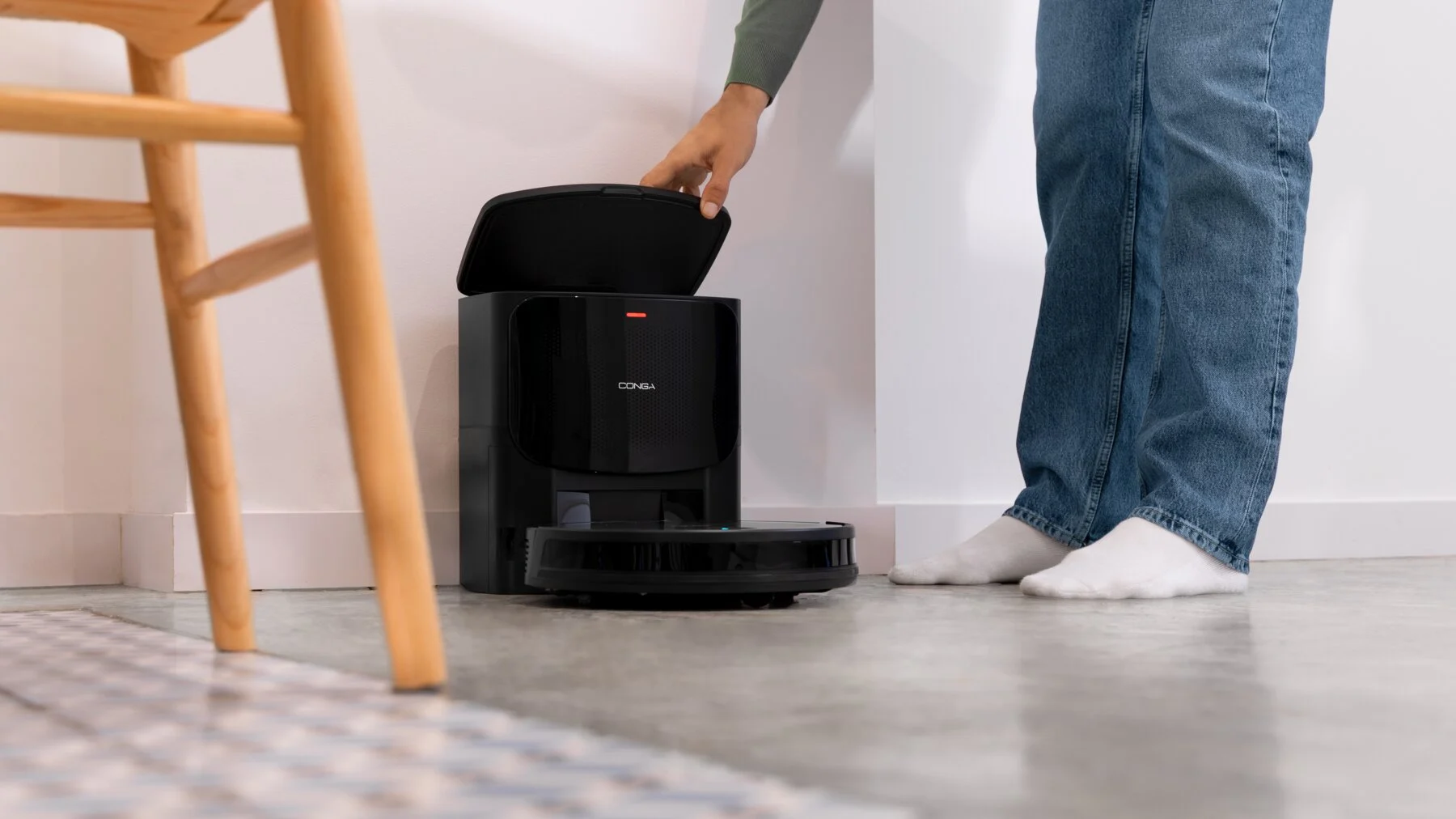 No te preocupes por la limpieza ni por tu Conga, con la base de autovaciado se carga y se vacía sin que tu tengas que hacer nada, todo ventajas.